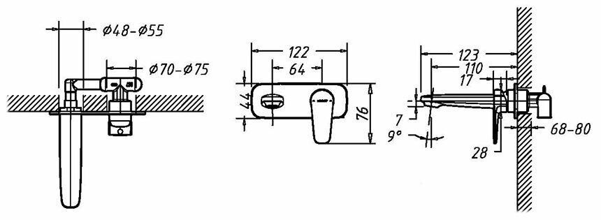 Встраиваемый смеситель настенный для раковины Bravat Source P8173218BW-ENG