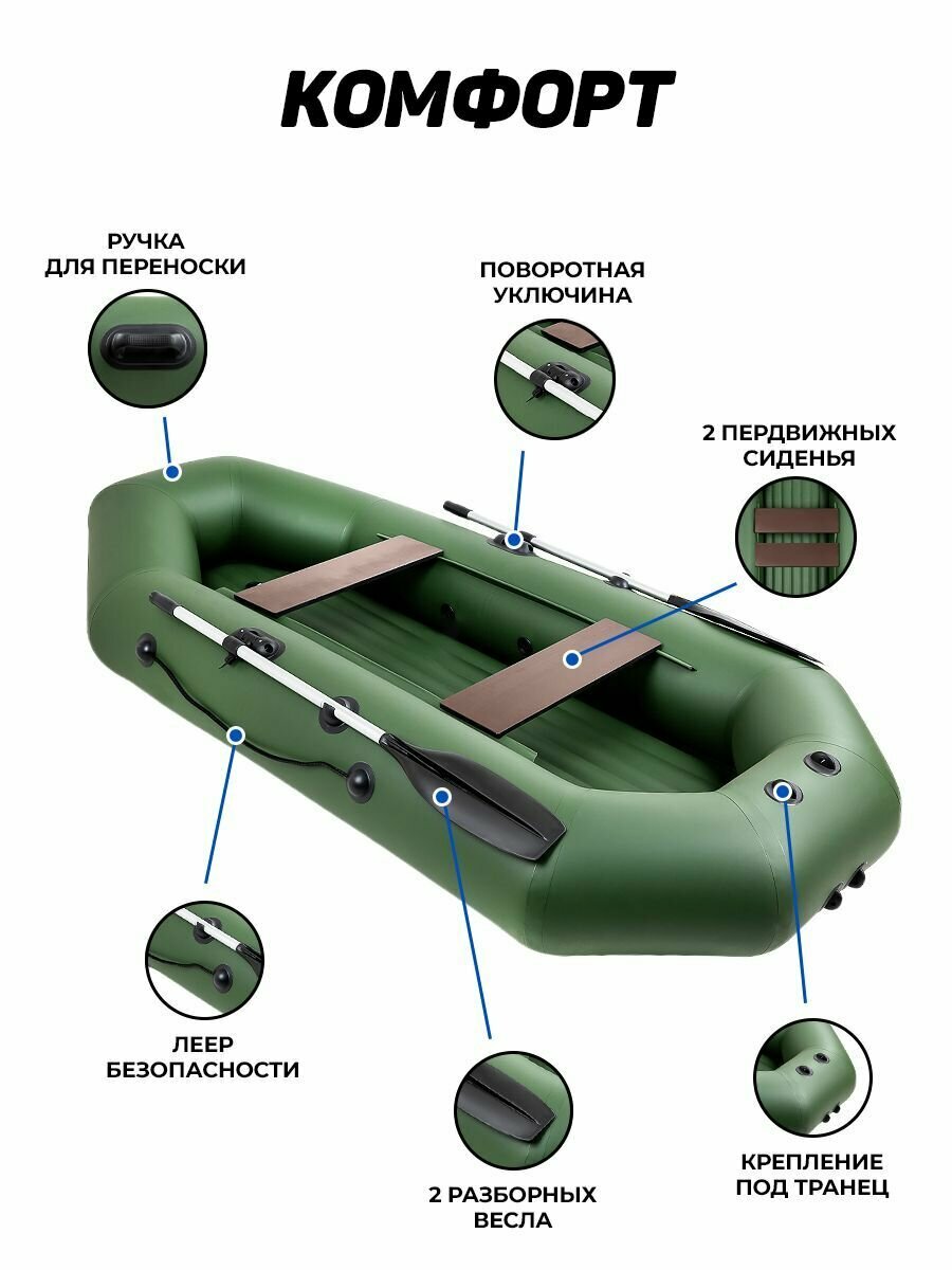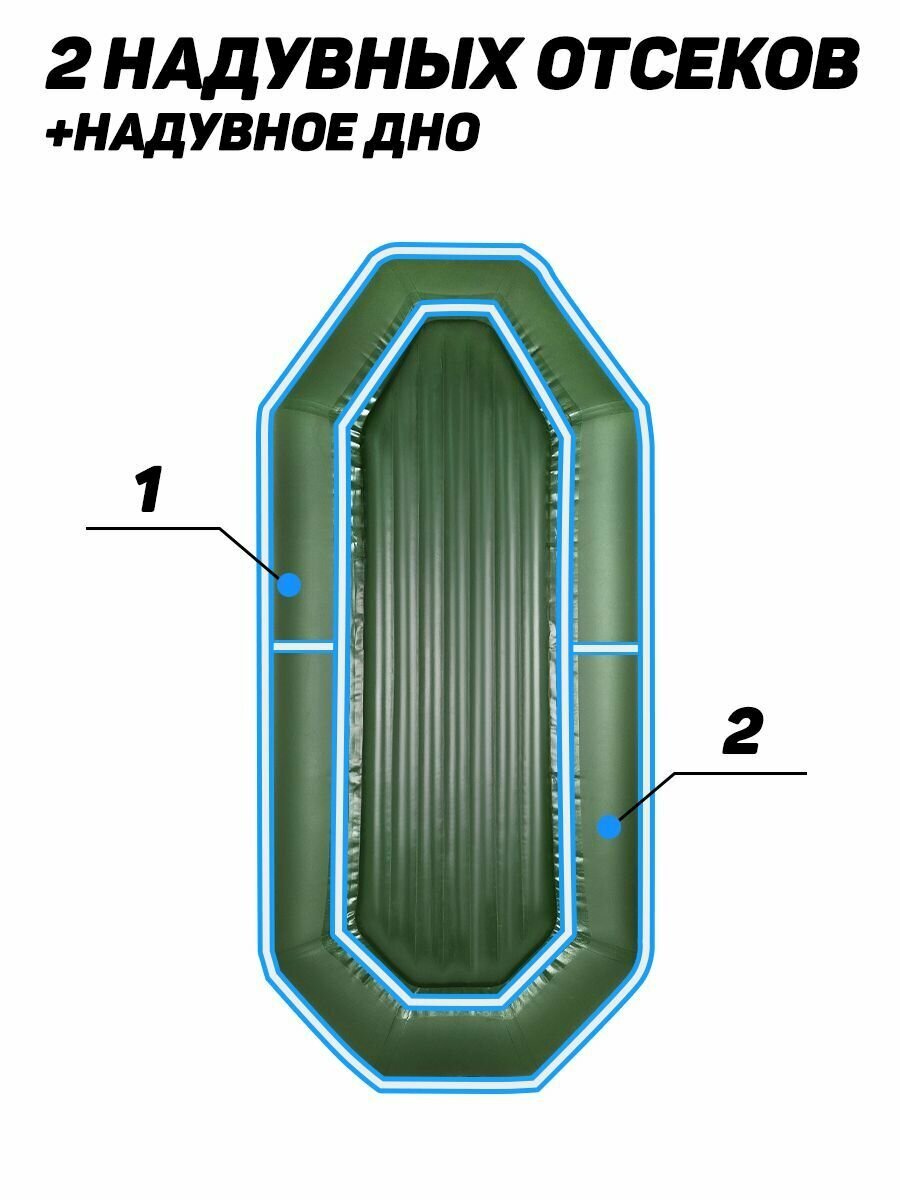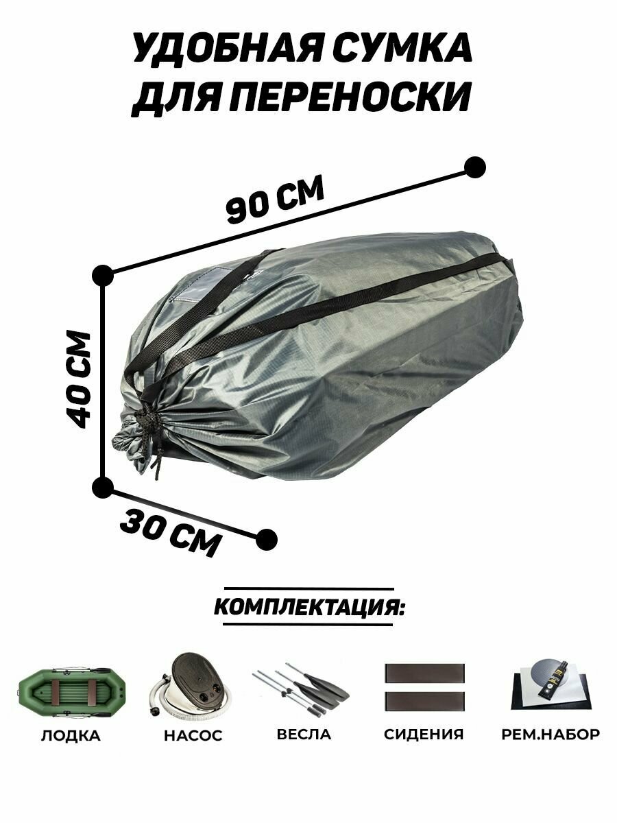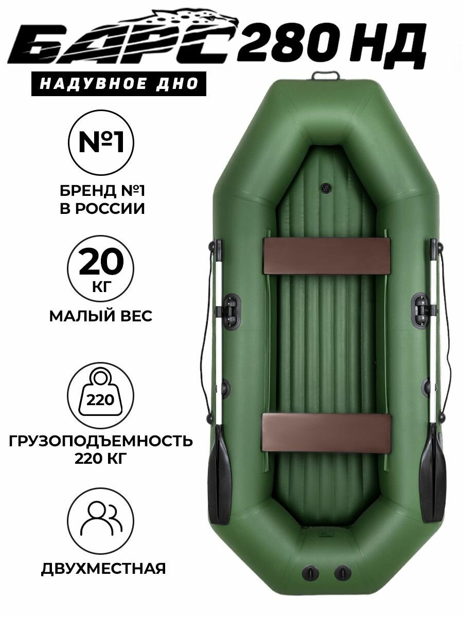 Лодка надувная для рыбалки Барс 280 НД зелёный, надувное дно интересное: