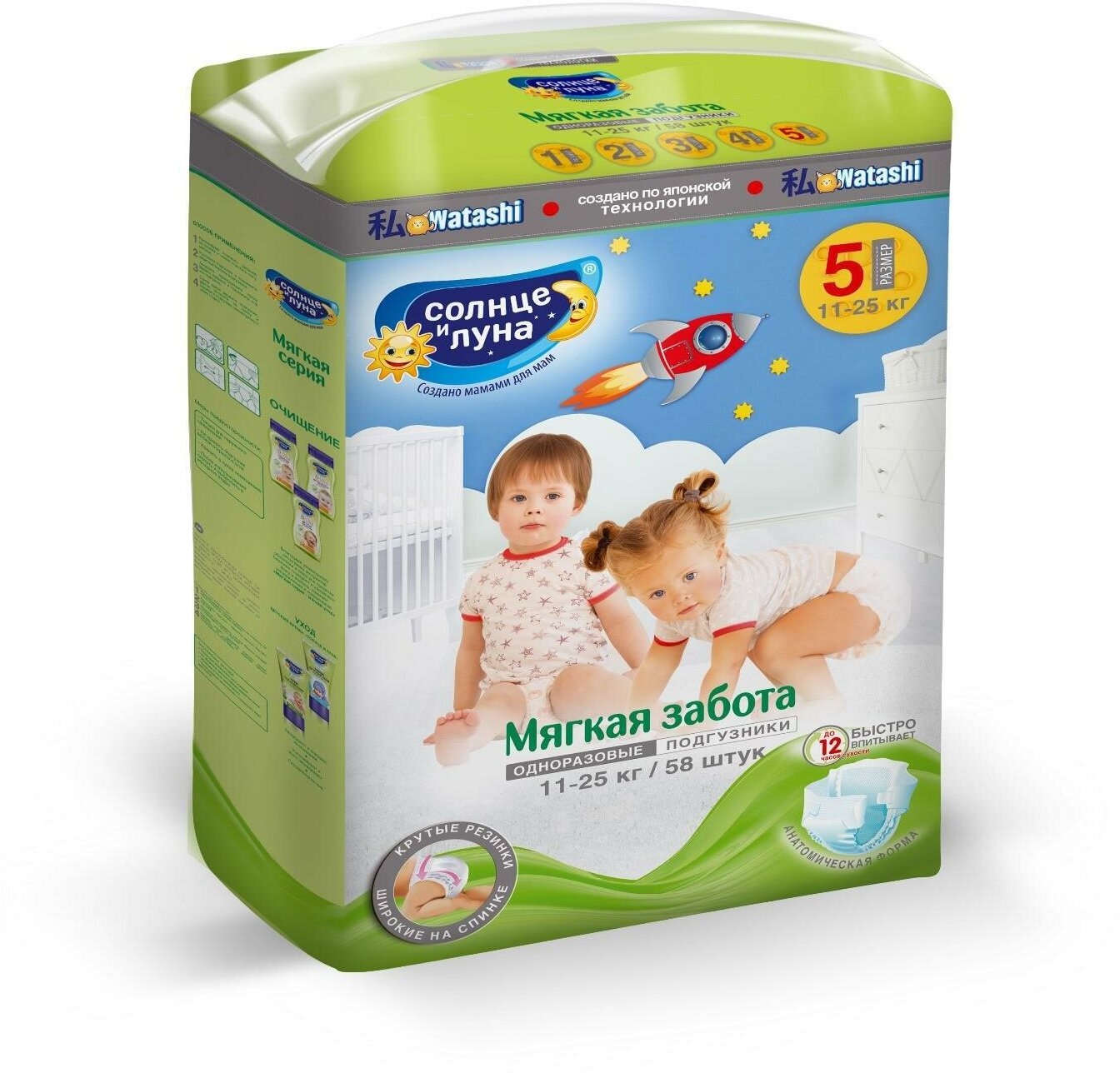 Подгузники Солнце и Луна XL (11-25 кг), 58шт Солнце и Луна 3573192 . интересное: