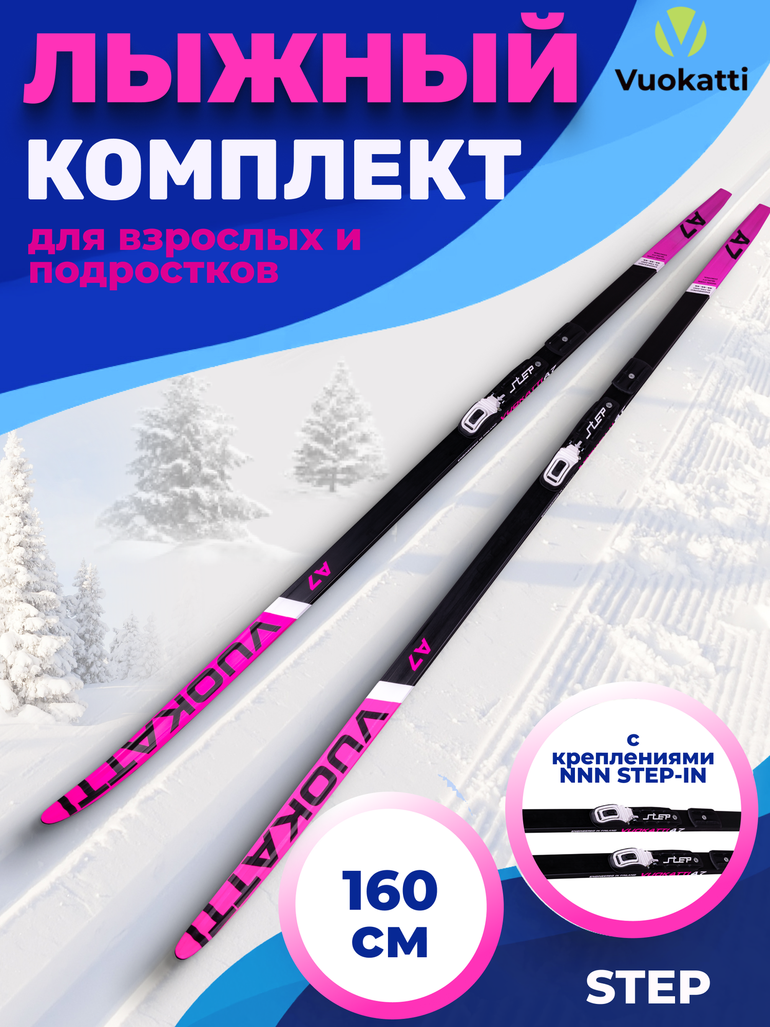 Купить Беговые лыжи VUOKATTI 160 см с креплением NNN Step-in (Step) Black Magenta без палок