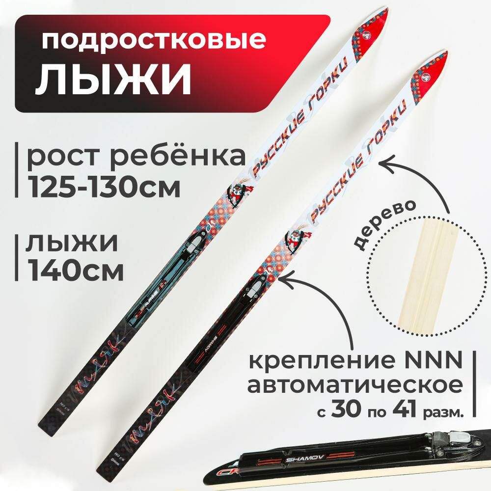 Купить Детские подростковые лыжи Маяк дерево с креплениями NNN 140 см / Комплект лыж для детей ростом 125-130 см, красно-белый