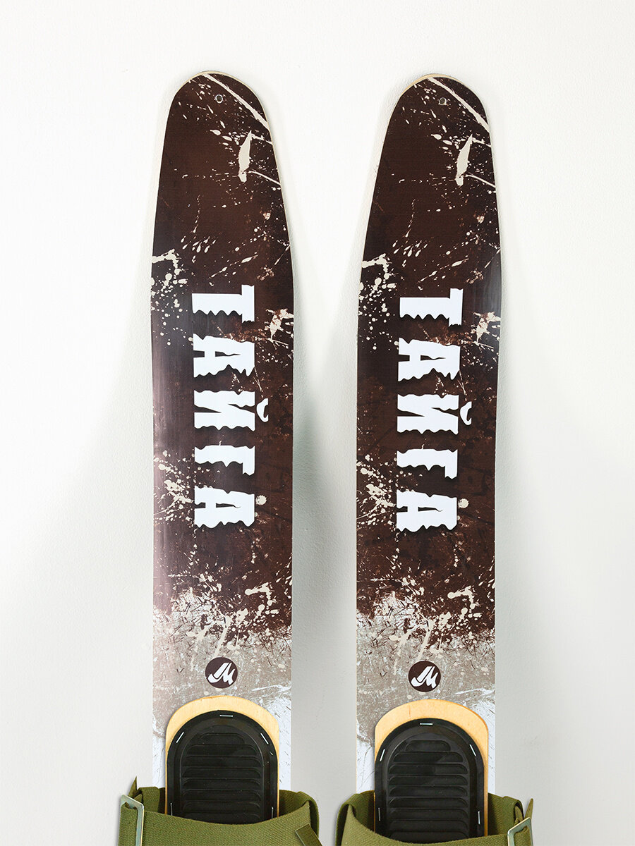 Комплект охотничьих лыж Маяк тайга 175х15 см цветные, дерево-пластик + кожаные крепления с пяткой / промысловые для рыбалки, охоты, туризма