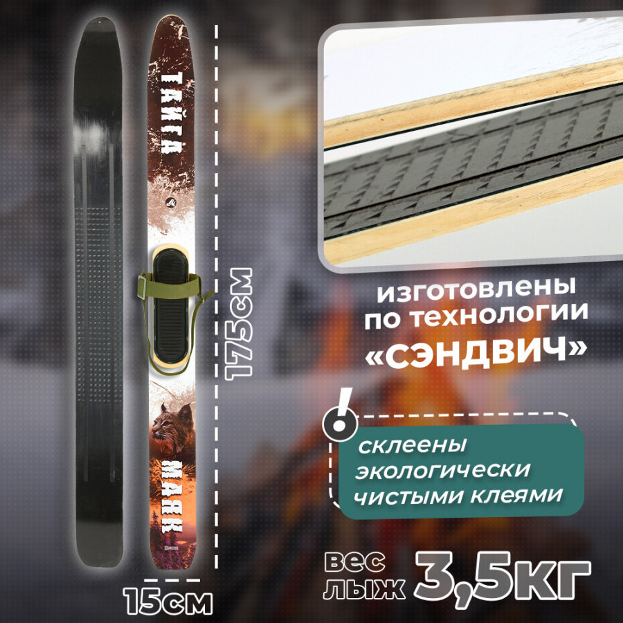 Лыжи охотничьи Маяк тайга 165 х 15 см из дерево-пластика с полужестким креплением