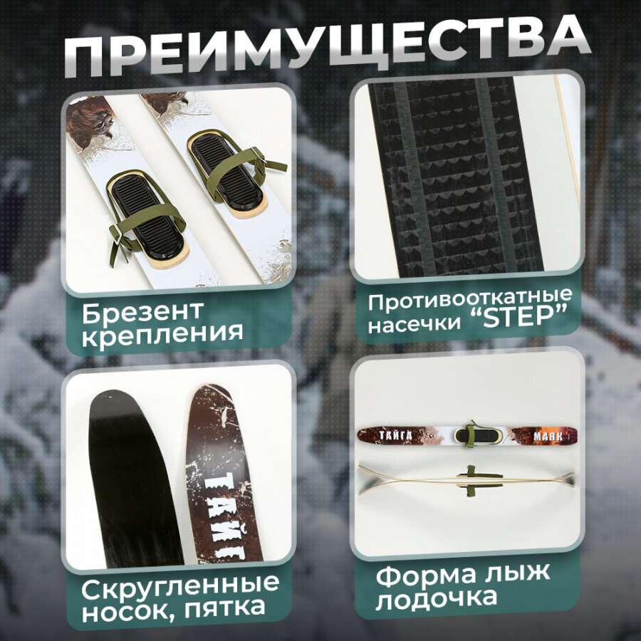 СохранитьКомплект охотничьих лыж Маяк тайга 175х15 см цветные, дерево-пластик + крепления брезент / промысловые для рыбалки, охоты, туризма интересное: