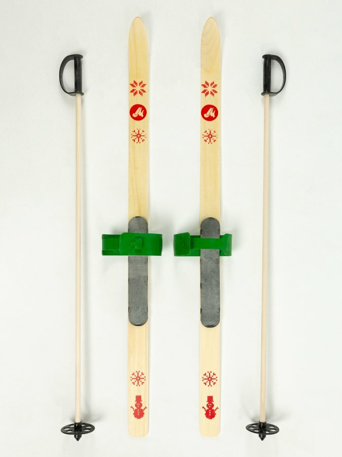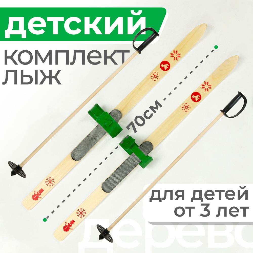 Купить Детский лыжный комплект BABY 70 см деревянные с креплениями и палками, зеленые / Беговые лыжи