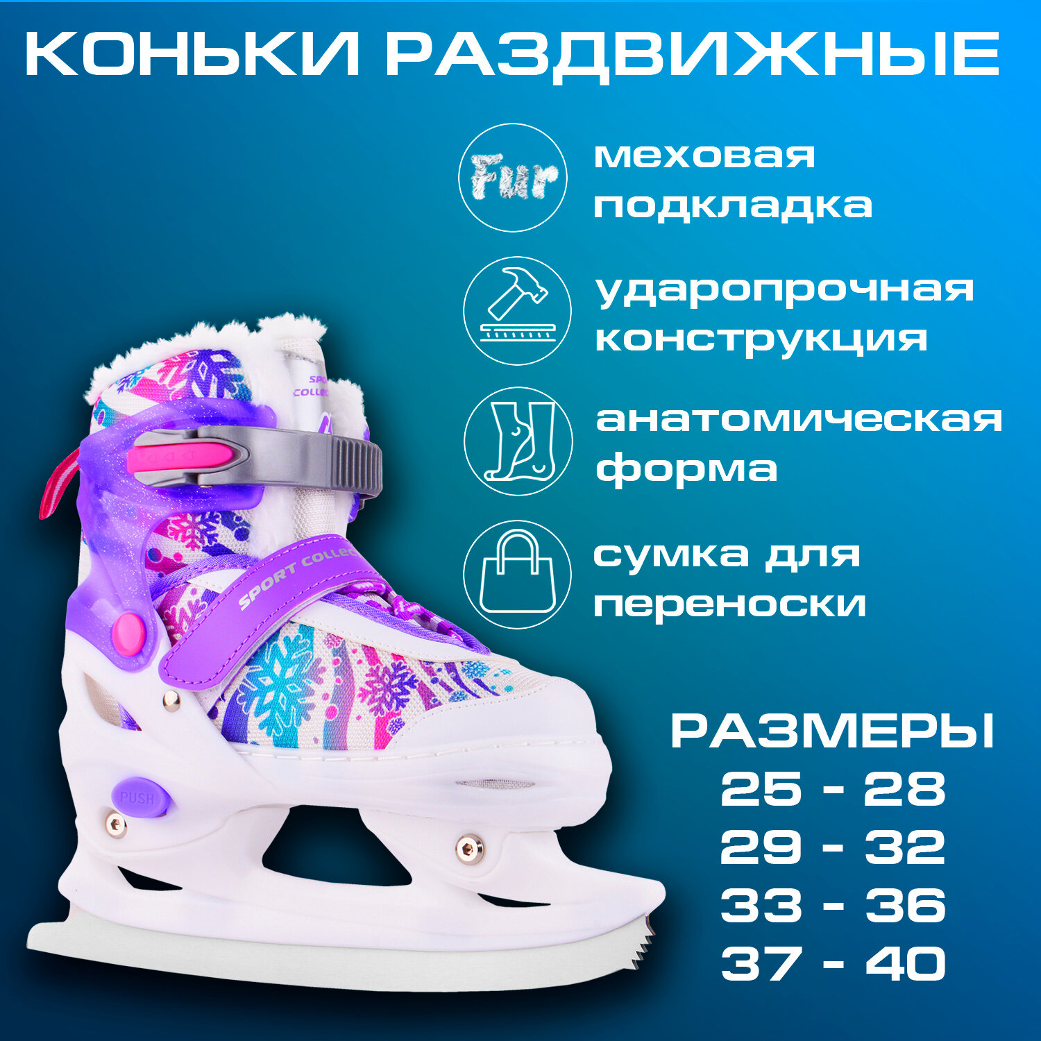 Ниже Вы можете прочитать отзывы на Раздвижные коньки Lovely violet (с мехом) Размер : XS (25-28), ознакомится с подробными характеристиками, посмотреть интересные обзоры и фотографии на Раздвижные коньки Lovely violet (с мехом) Размер : XS (25-28).