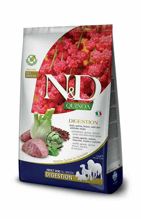 Farmina N&D Quinoa Dog Grain Free Digestion сухой беззерновой корм для взрослых собак для поддержки пищеварения с ягненком и киноа - 2,5 кг