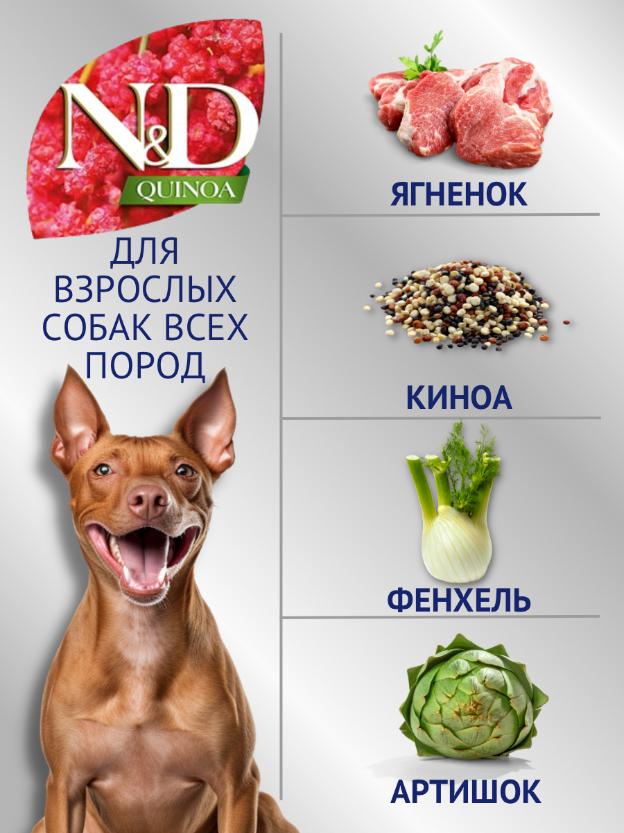 Сухой корм для собак Farmina N&D Quinoa, беззерновой, ягненок, с артишоком, с фенхелем, с мятой, с киноа 800 гр (для мелких пород)