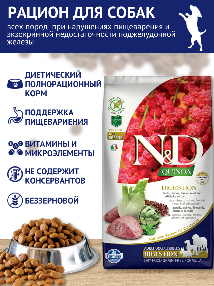 Farmina N&D Dog Grain Free quinoa digestion lamb корм для собак улучшающий пищеварение с ягненком и киноа