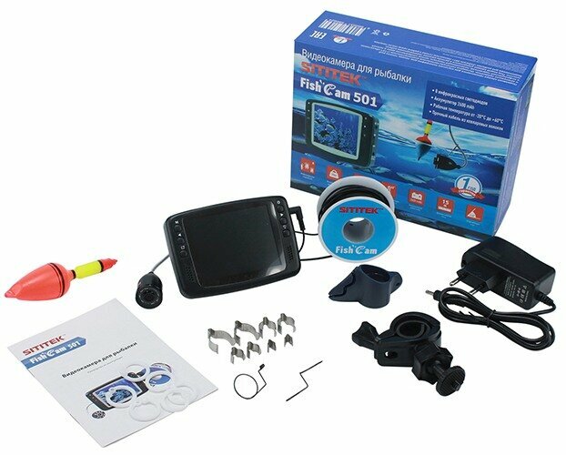 | Комплектация | видеокамера с видеокабелем 15 м на катушке; монитор; сетевой адаптер для зарядки аккумулятора; кронштейн для крепления монитора на удочку; держатель и комплект крепежа на удочку для камеры; поплавок; инструкция |