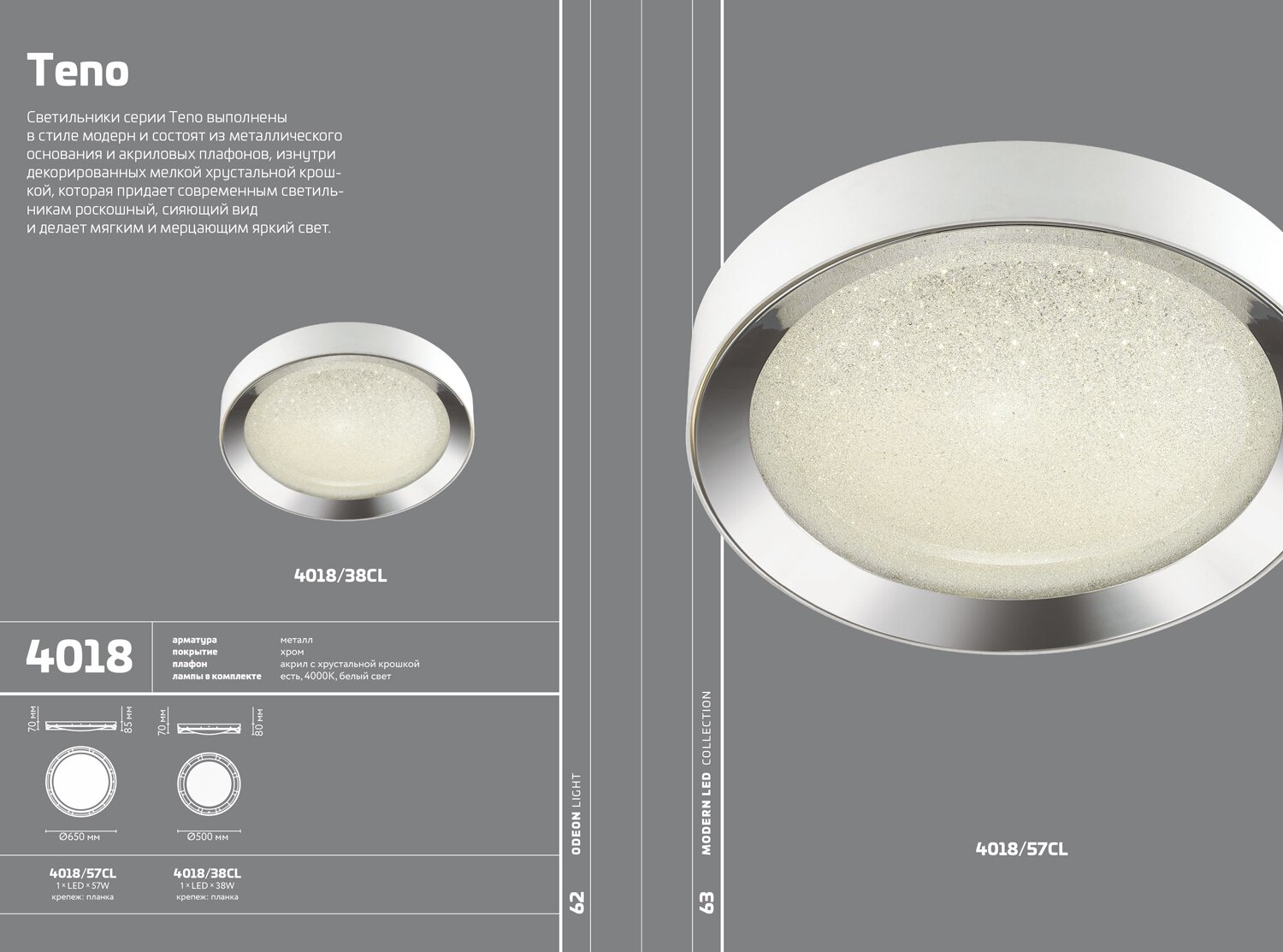 Купить Потолочный светодиодный светильник Odeon Light Teno 4018/57CL, LED, 57Вт, кол-во ламп:1шт., Хром