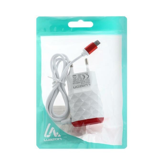 Luazon Home Сетевое зарядное устройство LuazON LCC-25, 2хUSB, 1 А, кабель microUSB, красно-белое