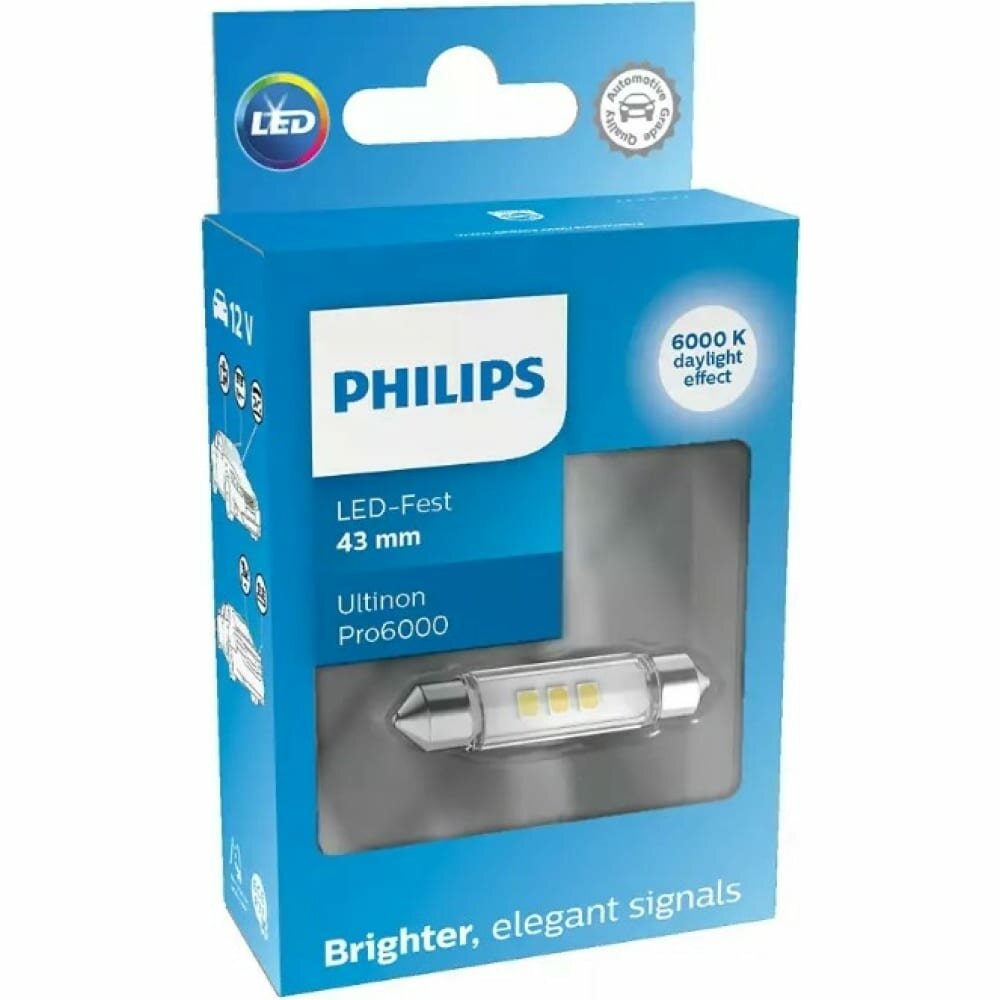 Сигнальная лампа PHILIPS C5W (SV8.5/8) LED 43мм White Ultinon Pro6000 6000K 100лм 12V, 1шт интересное: