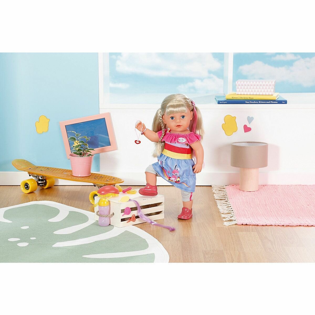| Комплектация | кукла, комплект одежды, бутылочка, расческа, браслет, цветные заколки-пряди (2 шт.), заколки (2 шт.), резинки для волос (2 шт.) |
