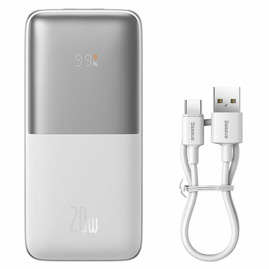 Внешний аккумулятор Baseus Bipow Pro Digital Display,10000mAh, 20W + Кабель USB to Type-C 3A 0.3m, Белый, PPBD040102