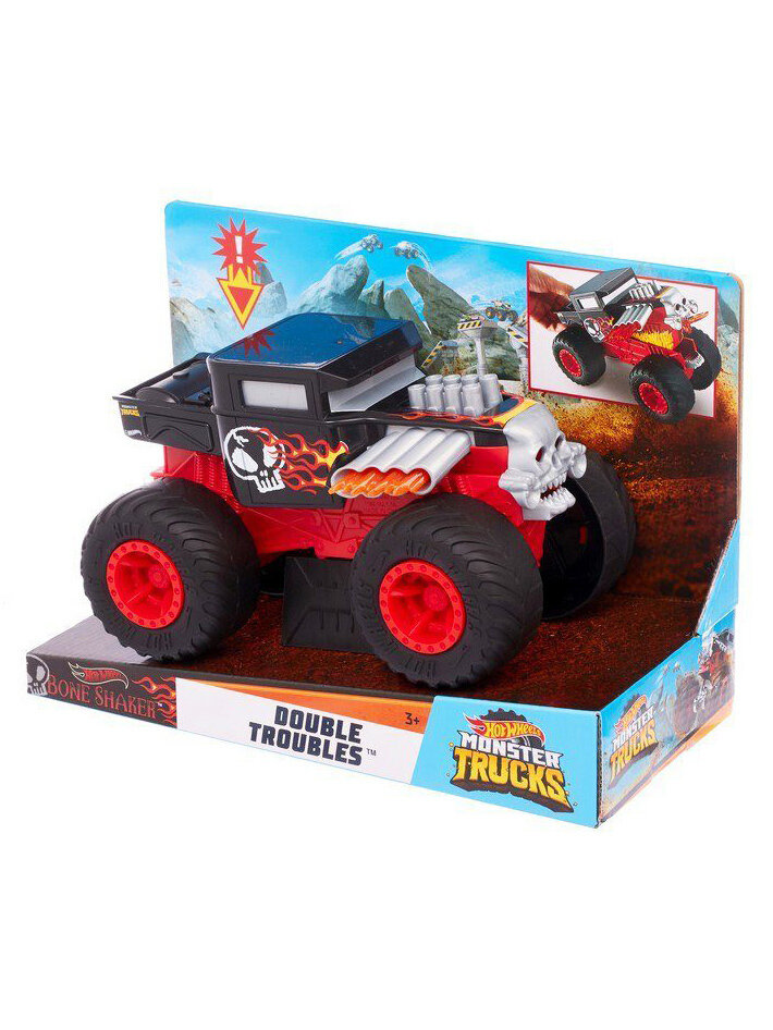 Монстр-трак Hot Wheels Monster Trucks Double Troubles Bone Shaker (GCG06/GCG07) 1:24, черный/красный