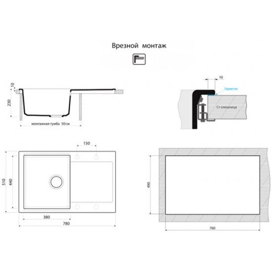 | Установка | врезная |