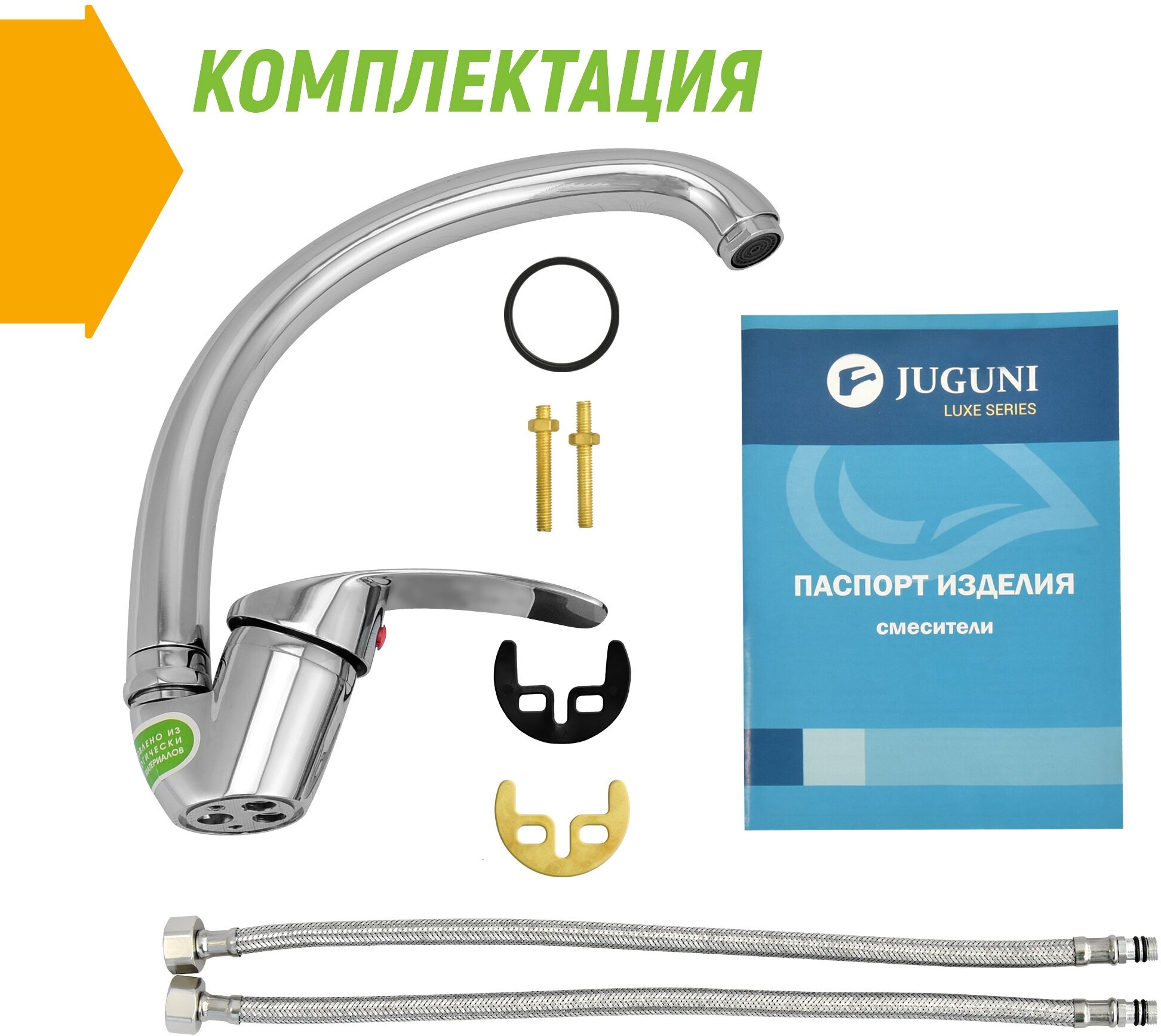 Смеситель для мойки одноручный Juguni с гибкой подводкой, литой поворотный излив, 0402.710