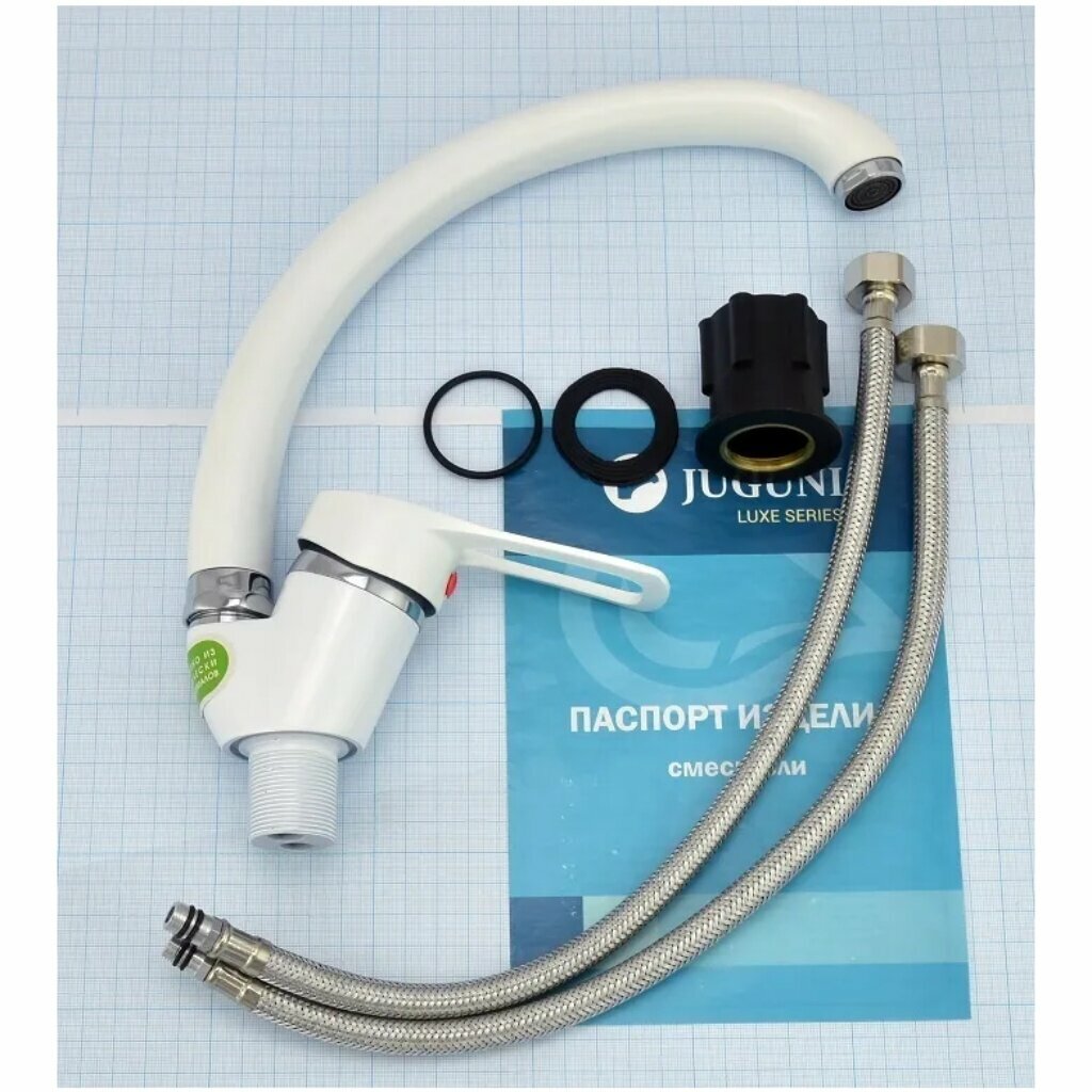 Juguni Смеситель для мойки белый одноручный Luxe с поворотным изливом, 40 картридж, 0402.449 интересное: