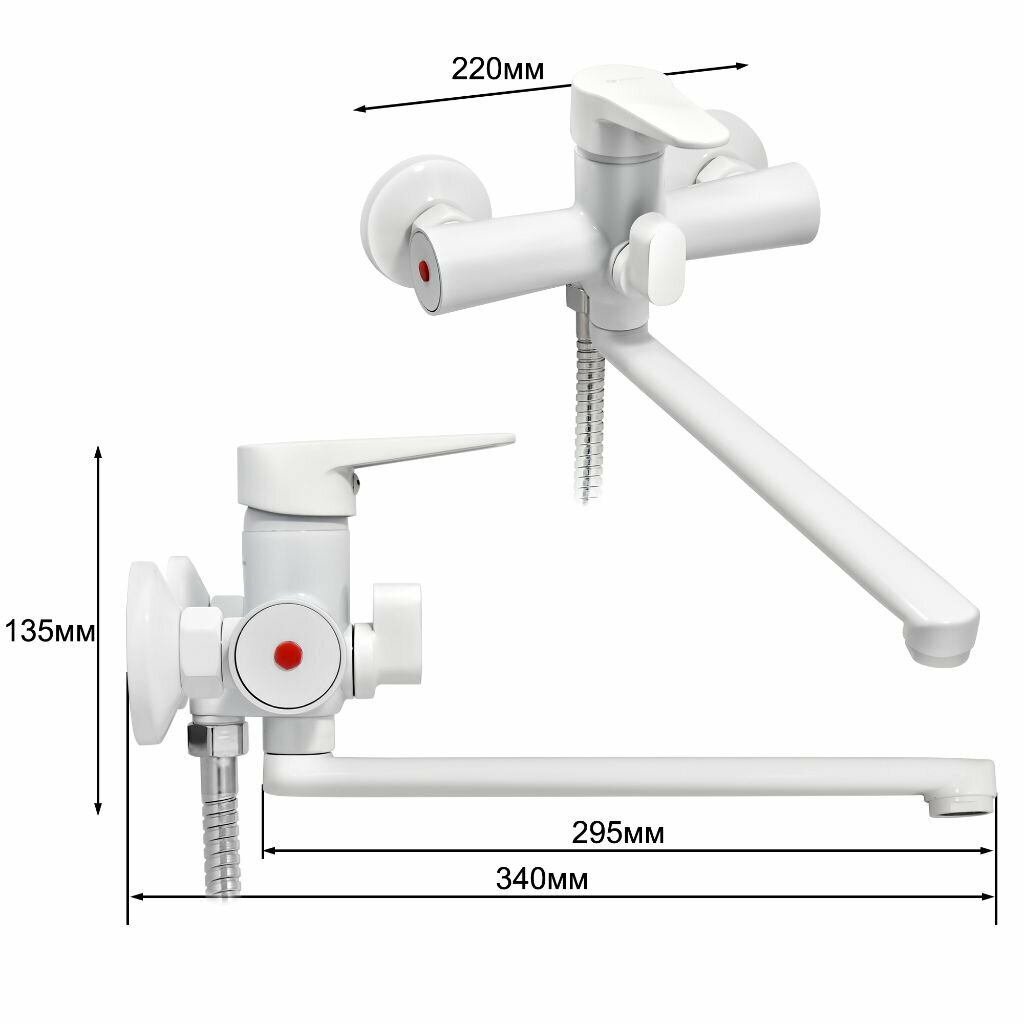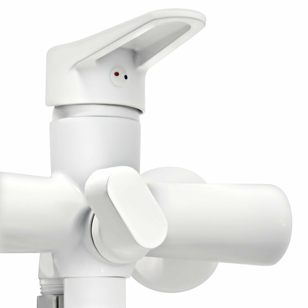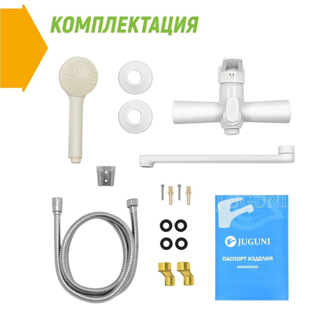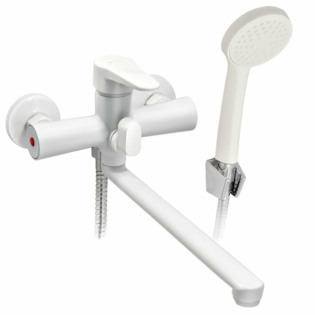 Смеситель для ванны с длинным изливом белый, шланг 150 см, лейка, Juguni 0402.160