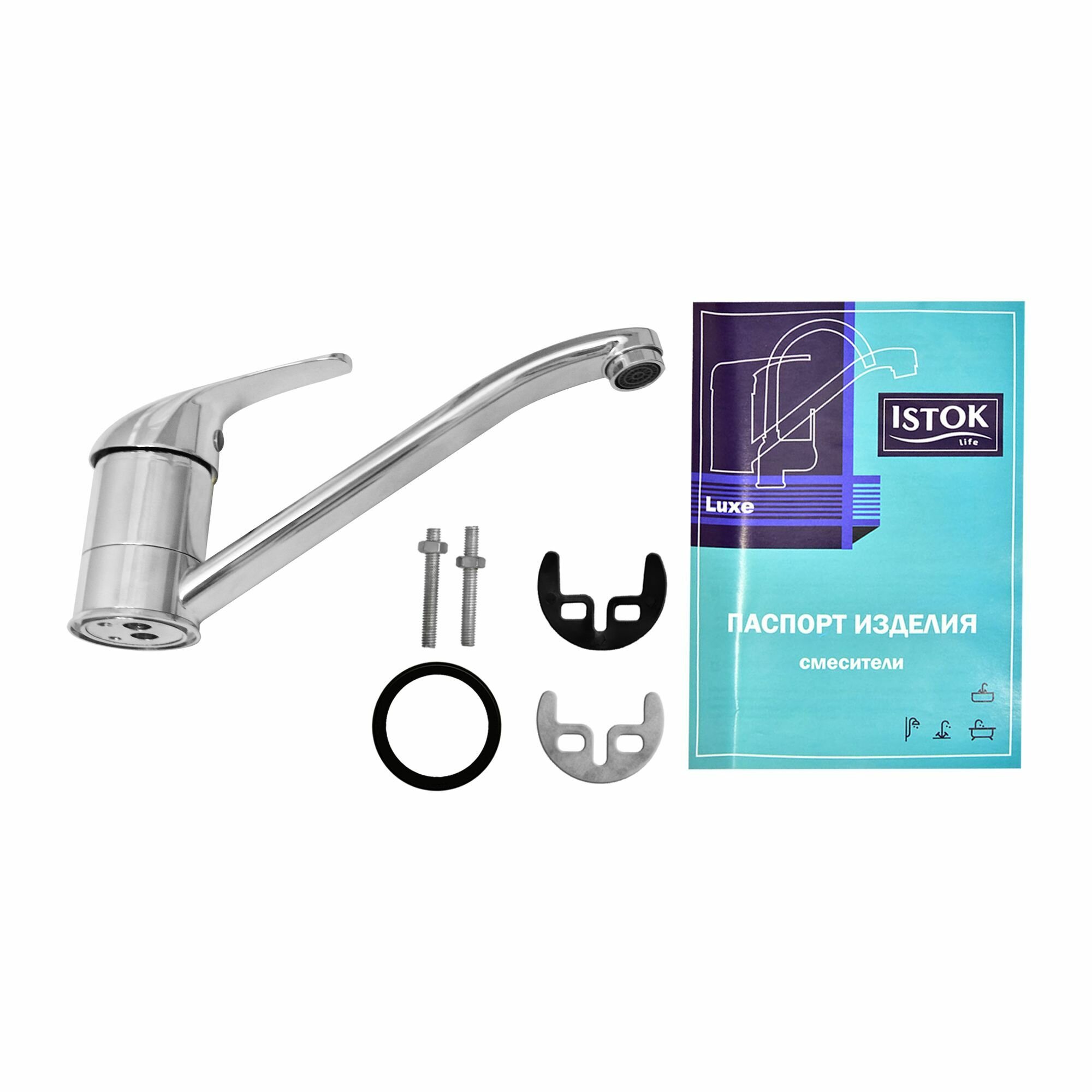 Латунный смеситель для мойки одноручный Istok life с поворотным изливом 25 см, 40 карт., шпилька