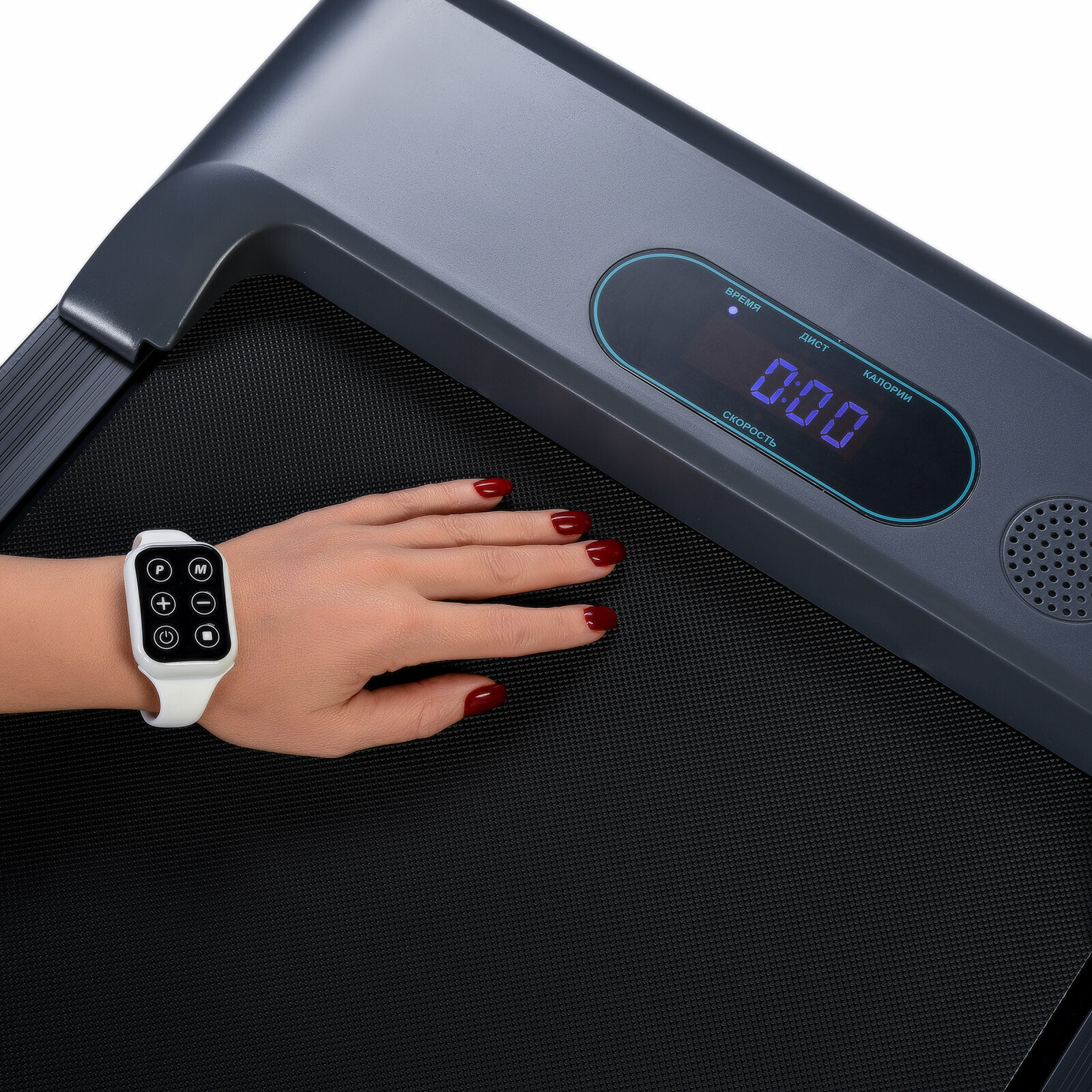 | Особенности | Ультратонкая беговая дорожка, пульт ДУ выполнен в форме наручных часов, встроенный динамик, bluetooth |