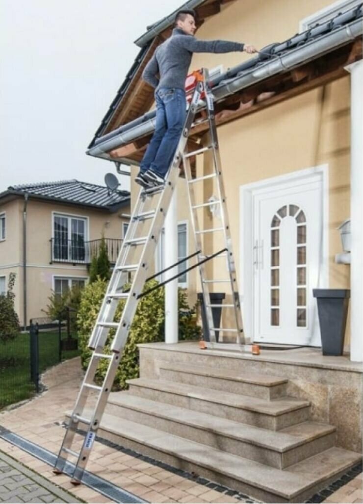 Лестница трехсекционная универсальная алюминиевая с функцией лестничных пролетов TRIBILO KRAUSE MONTO 3x10* 129765, 121240