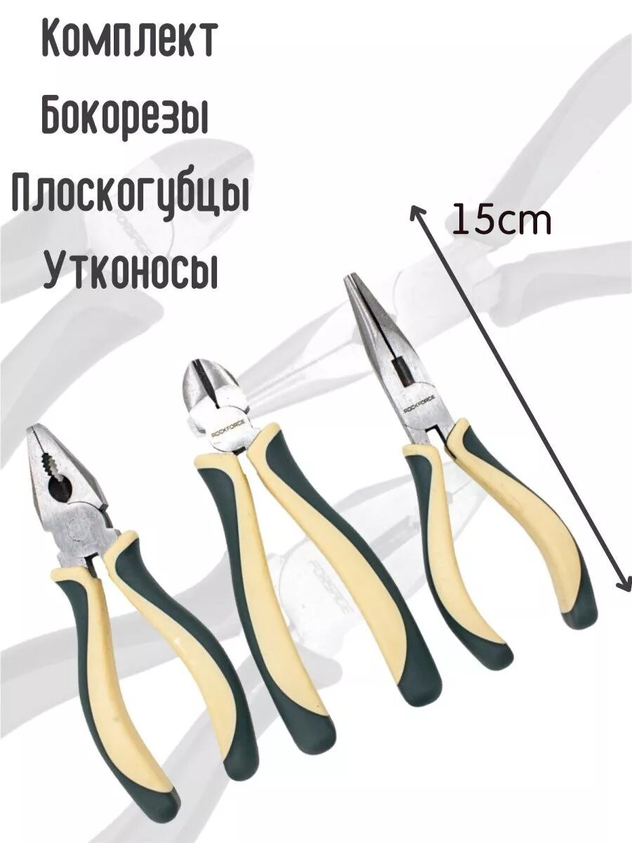 Набор RockForce шарнирно-губцевого инструмента 3 предмета 6''-150мм(бокорезы, плоскогубцы, утконосы), в блистере