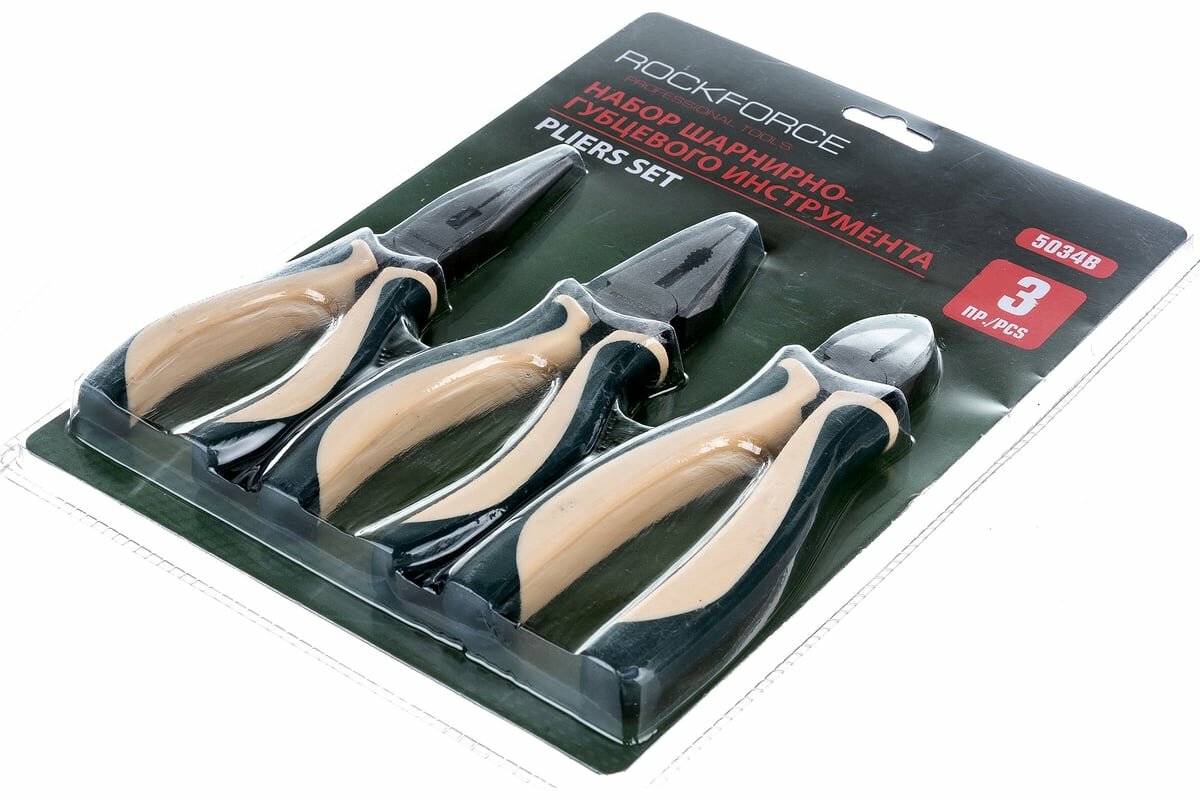 Набор RF-5034B шарнирно-губцевого инструмента 3пр. 6''-150мм (бокорезы, плоскогубцы, утконосы), в блистере ROCKFORCE