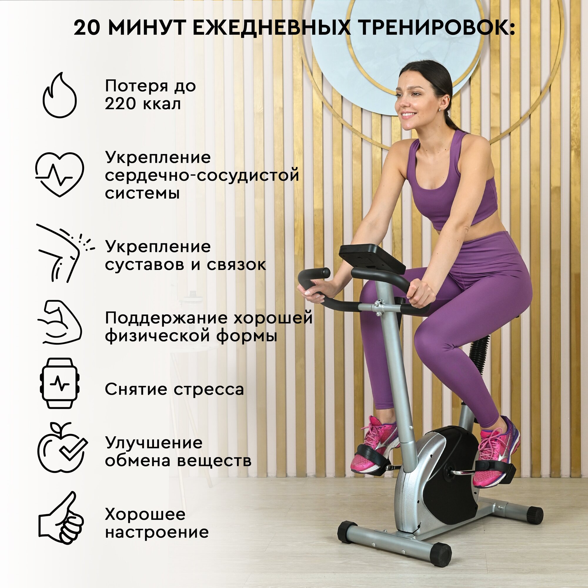 SOLRAY Велотренажер SL-BIKE-050 8 уровней интенсивности, держатель для телефона, антискользящие педали интересное: