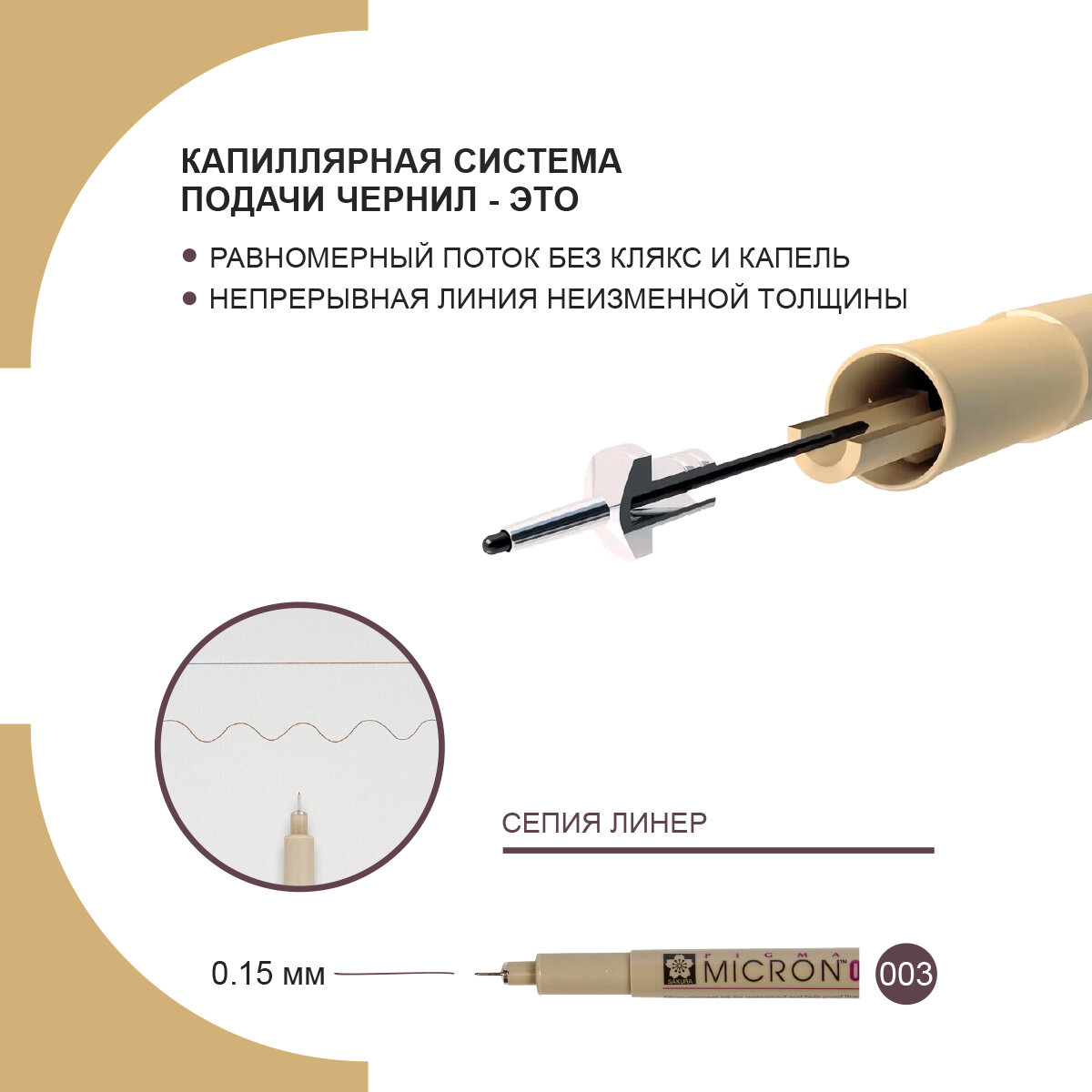 Купить Ручка капиллярная Sakura Pigma Micron 003, толщина линии 0.15 мм, цвет сепия