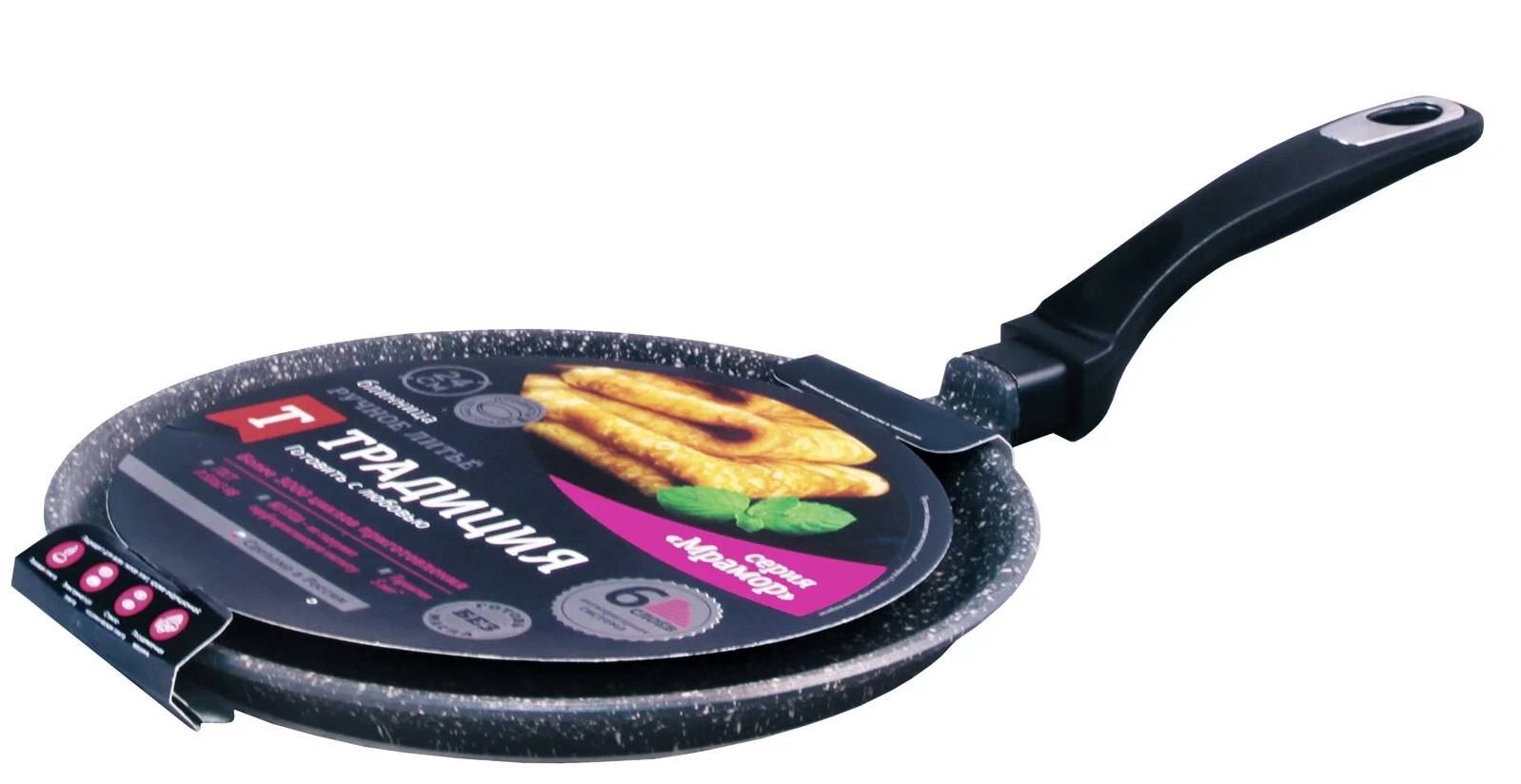 Блинница Традиция Мрамор антипригарная, литая, 24 см