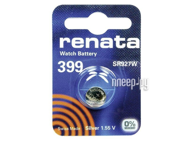 Батарейка для часов Renata 399 SR 927 W 1.55V, 55mAh, 9.5x2.7mm, в блистере 1 шт.