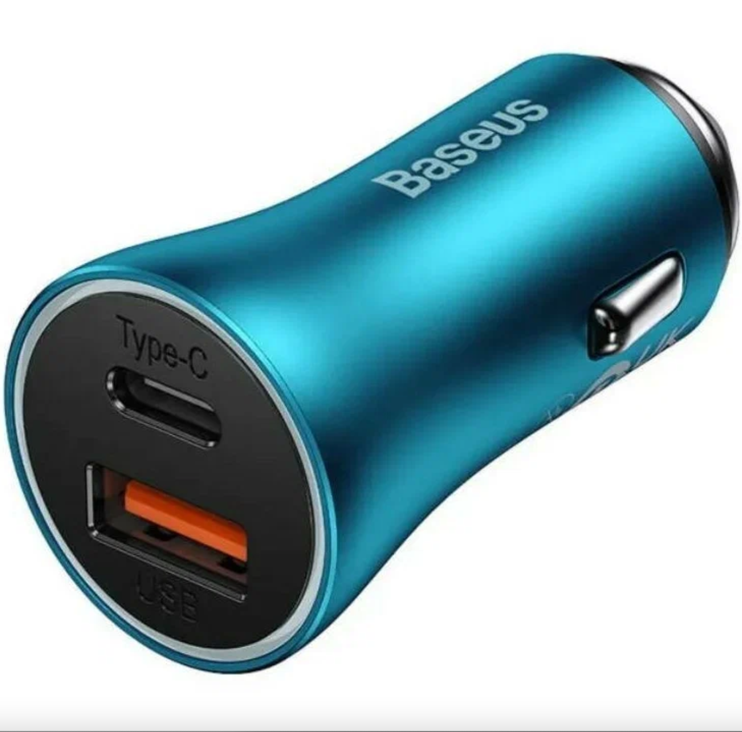 Автомобильное зарядное устройство BASEUS Golden Contactor Max Dual, USB+Type-C, 8A, 60W, синий