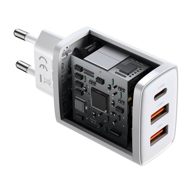 Зарядное устройство BASEUS Compact Fast Charger 2*USB+USB-C, 30W, Белый, CCXJ-E02