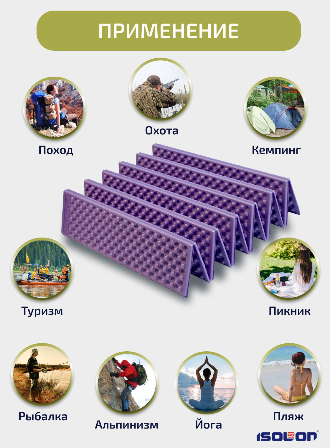 Коврик для туризма и отдыха Isolon Decor Камуфляж 8 мм, 180х55 см хаки