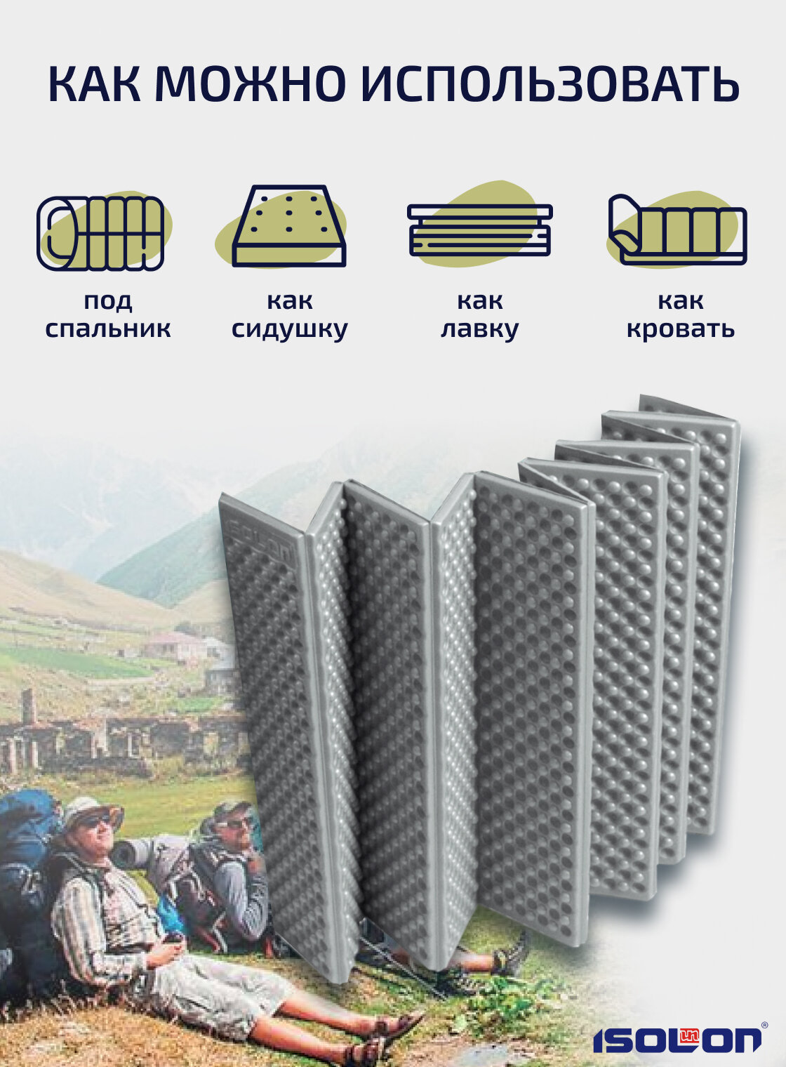 Коврик плотный складной туристический ISOLON Tourist Flex 179 х 59 х 1.5 см хаки, серый