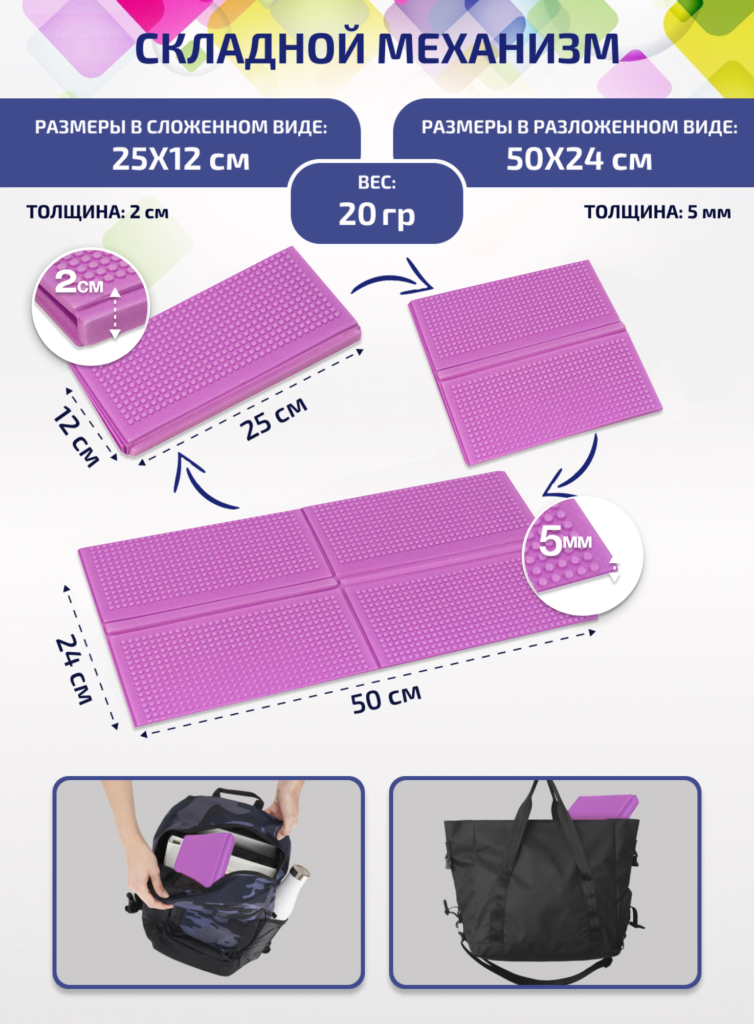Сидушка складная компактная для туризма и отдыха 240х490х5мм, лаванда интересное: