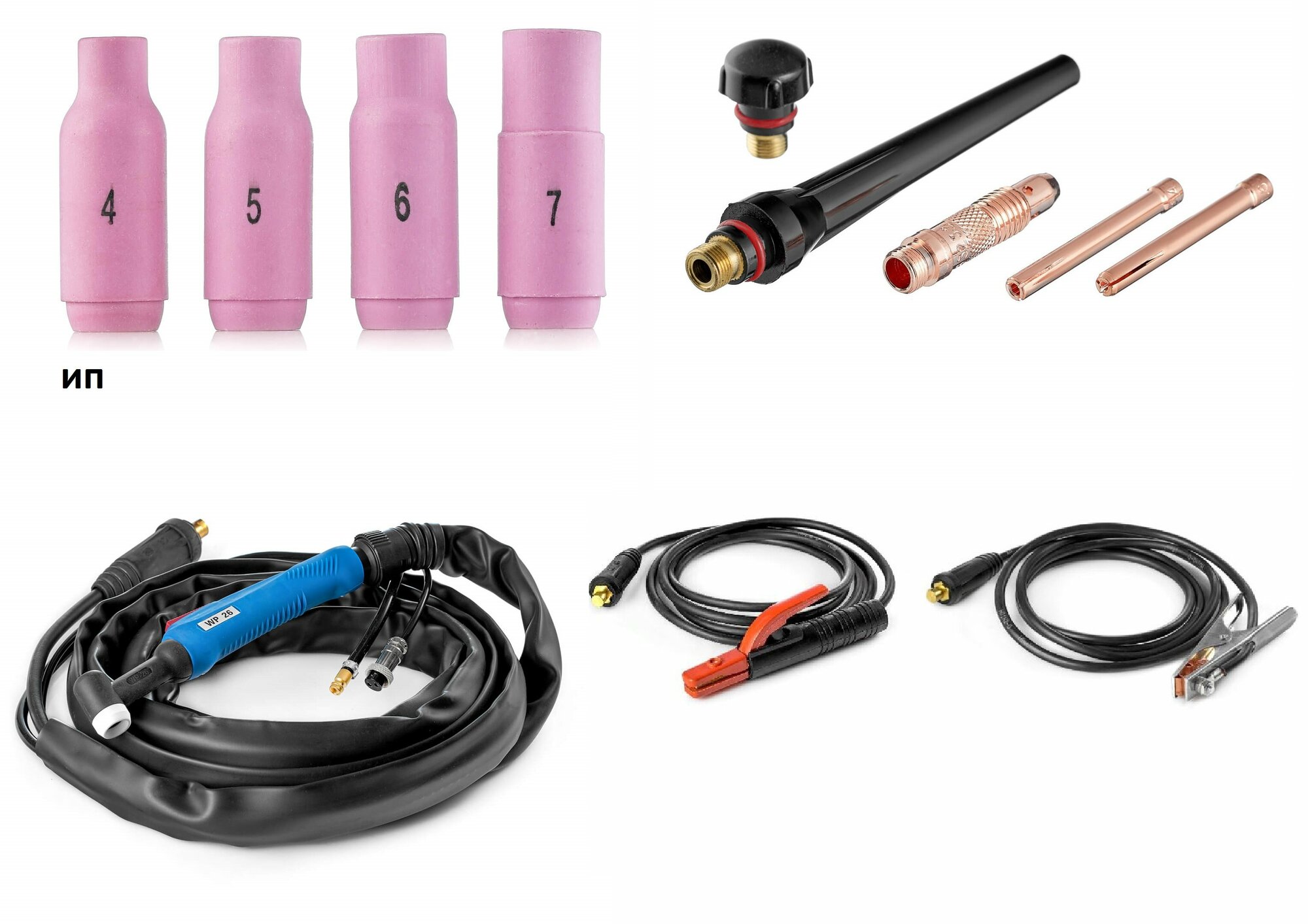 | Комплектация | - инверторный аппарат аргонодуговой сварки - 1 шт; - сварочная горелка TIG 26 серии - 1 шт; - клемма заземления - 1 шт; - электрододержатель - 1 шт; - сопло керамическое - 4 шт; - цанга - 2 шт; - держатель цанги - 1 шт; - заглушка - 2 шт; - руководство по эксплуатации. |