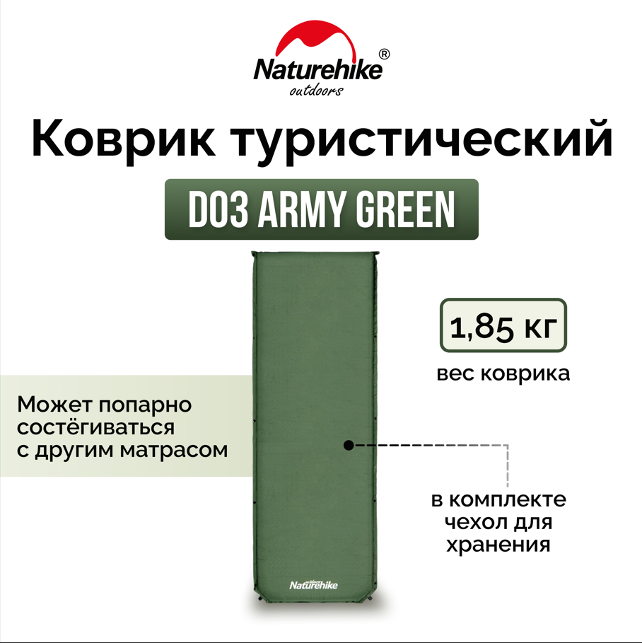 Самонадувающийся коврик Naturehike D03 (Армейский зеленый)