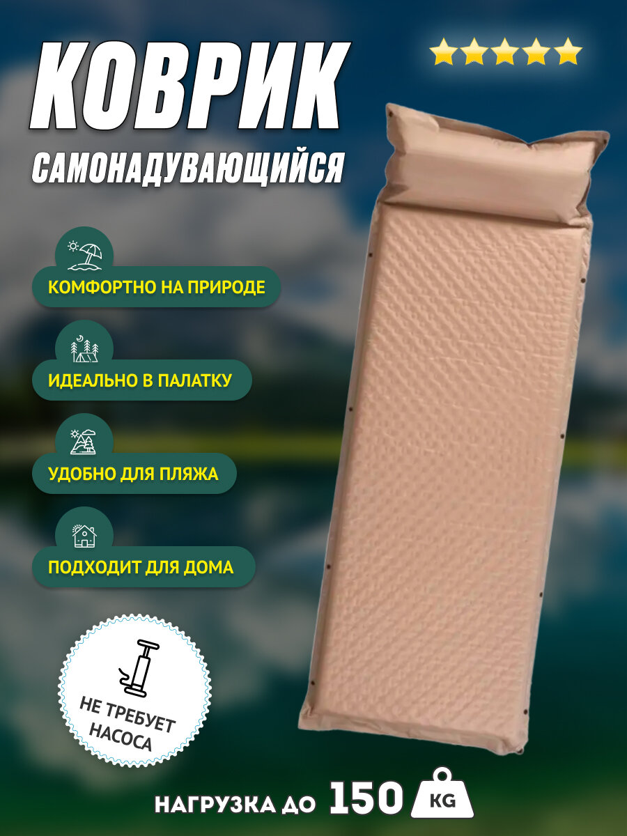 Коврик туристический самонадувающийся одноместный бежевый интересное: