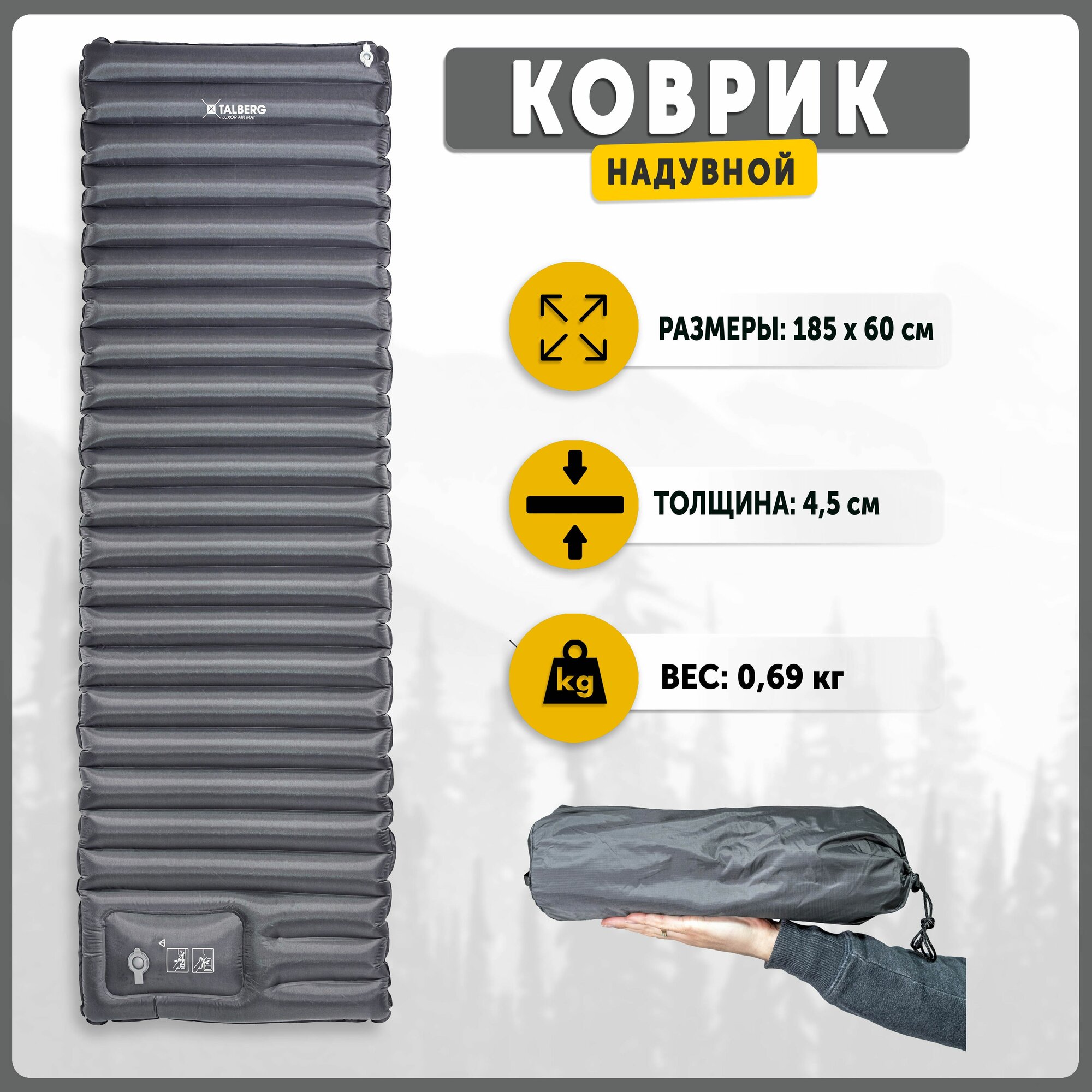 Talberg надувной коврик LUXOR AIR GREY MAT (185х60х8,серый) интересное: