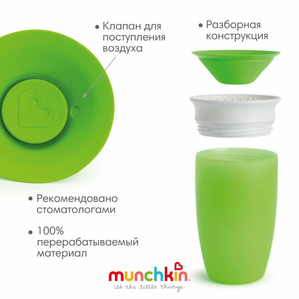 Munchkin поильник с крышкой MIRACLE® 360° непроливайка Зеленый 296 мл. 12+