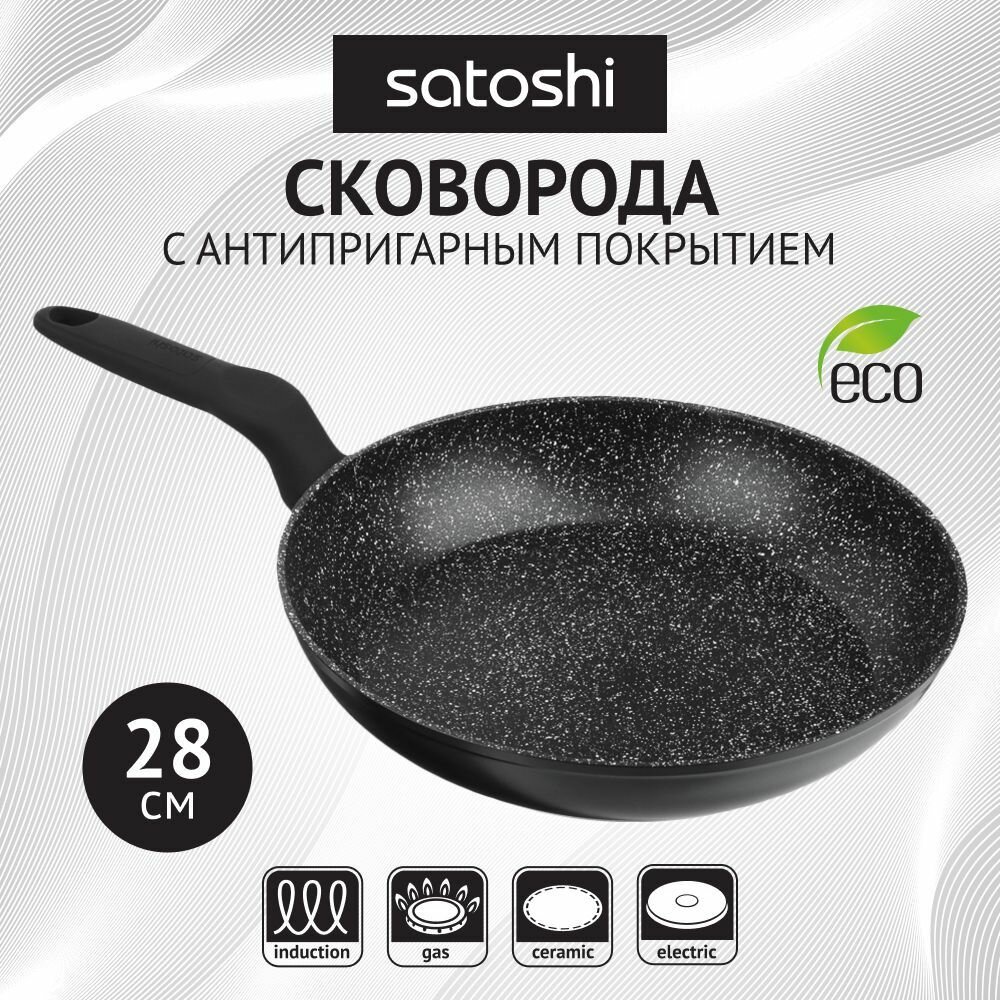 Сковорода Satoshi Стоун 28 см с антипригарным покрытием, индукция, без крышки, литой алюминий