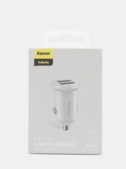 Автомобильное зарядное устройство BASEUS Grain Pro, 2USB, 4.8A, белый