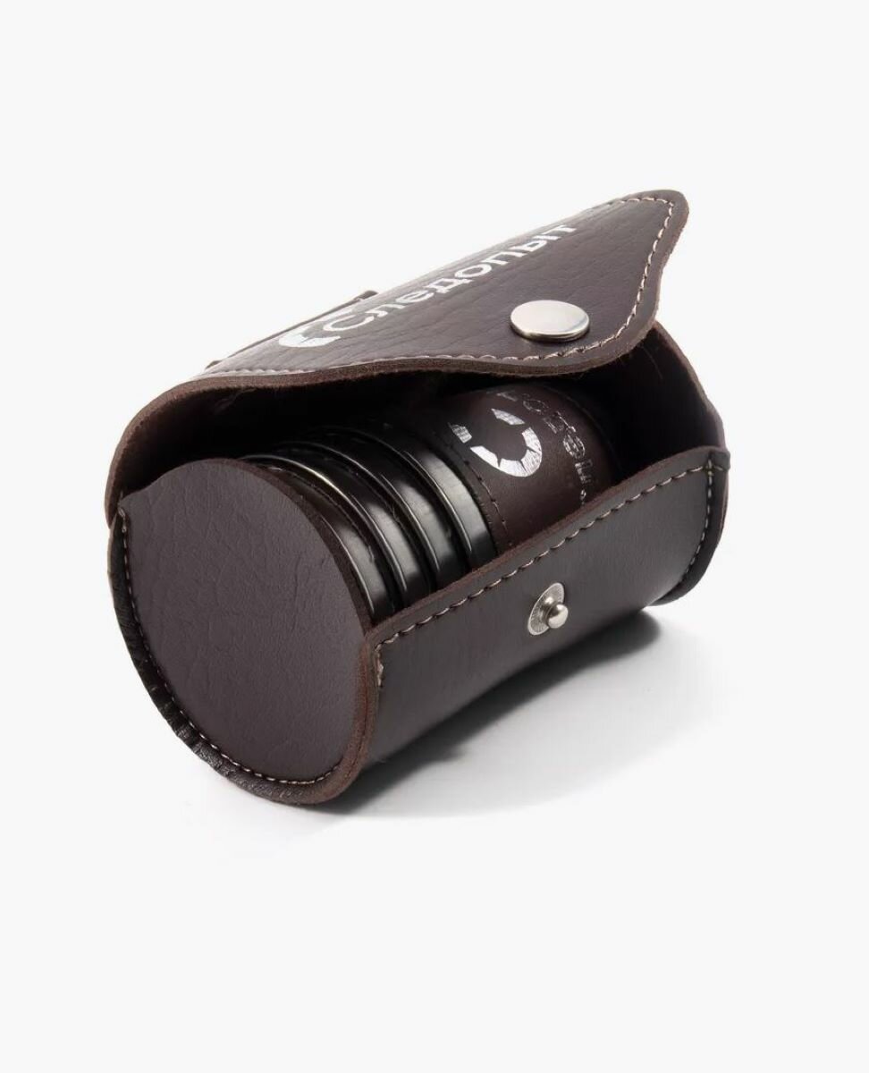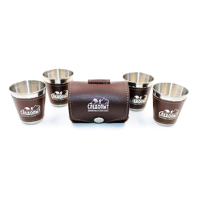 Стаканчик Следопыт стовочка в кожаной тубе (4 шт)