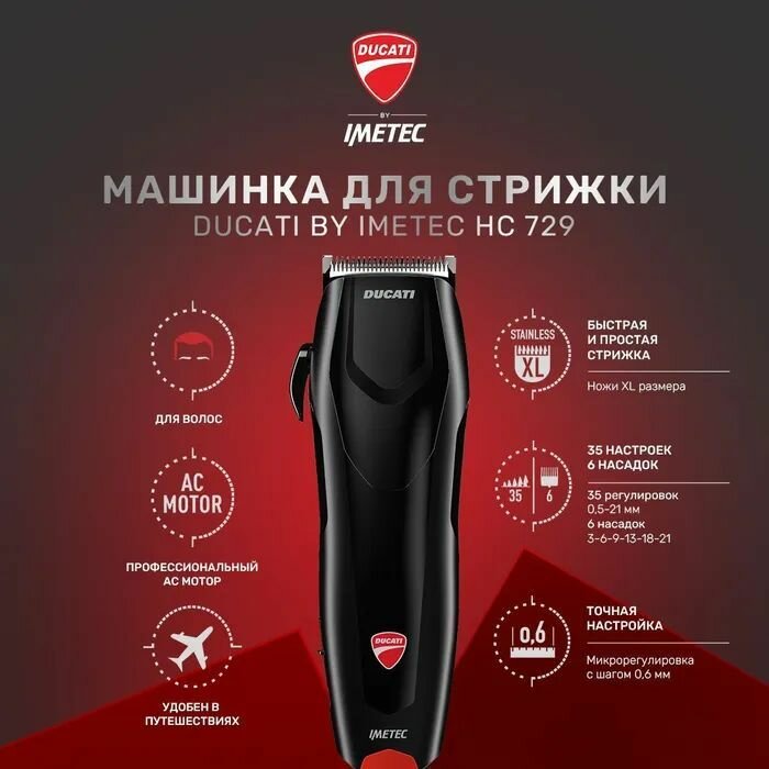Машинка для стрижки Ducati by Imetec HC 729 U-TURN, черный, красный интересное: