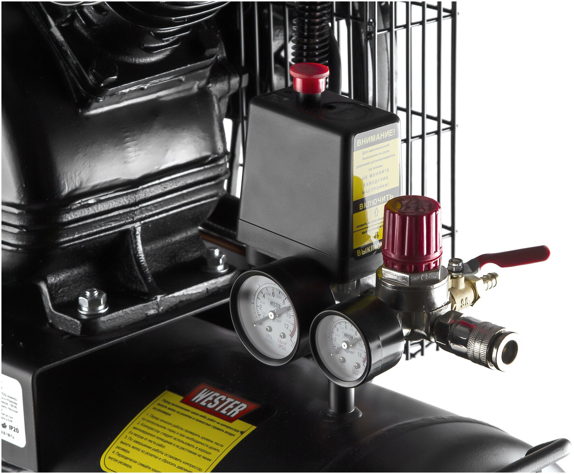Компрессор WESTER ременной привод, поршневой масляный, 2200 Вт, 340л/мин, 8бар интересное: