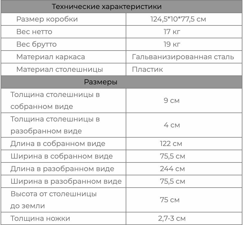 | Плюсы: | Отличный стол. Купили на дачу к приезду гостей. В сложенном виде занимает мало места. Помещается много людей. Отличное решение, когда нужен не постоянно. Поместиться в багажник при необходимости перевезти. |