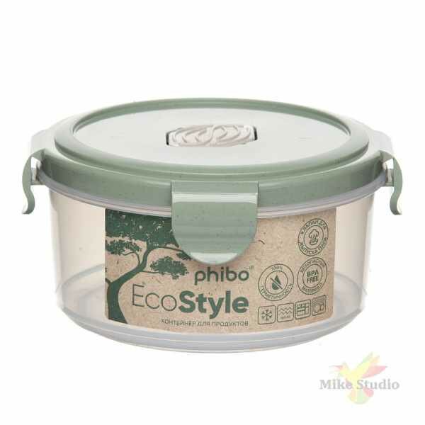 Контейнер Phibo Eco Style, круглый с клапаном, 0,55 л, зеленый флэк
